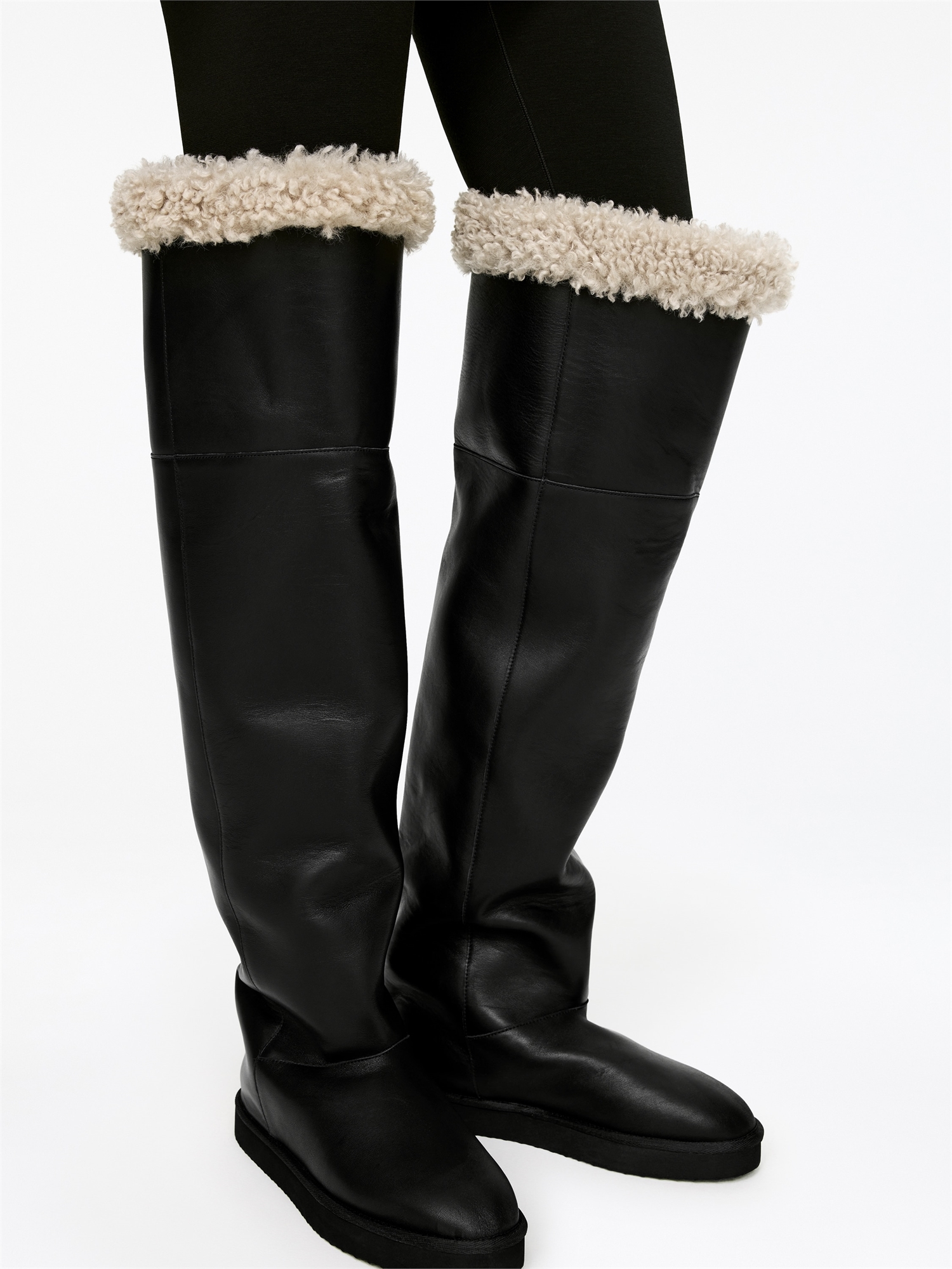Сапоги выше колена из кожи с подкладкой из искусственного меха. Высота голенища 60 см.
