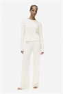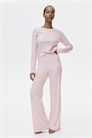 Пижама с верхом и низом из ребристого трикотажа, оба с аппликацией в виде маленькой розы спереди. Топ с длинными рукавами и круглым вырезом и брюки с эластичной талией.