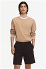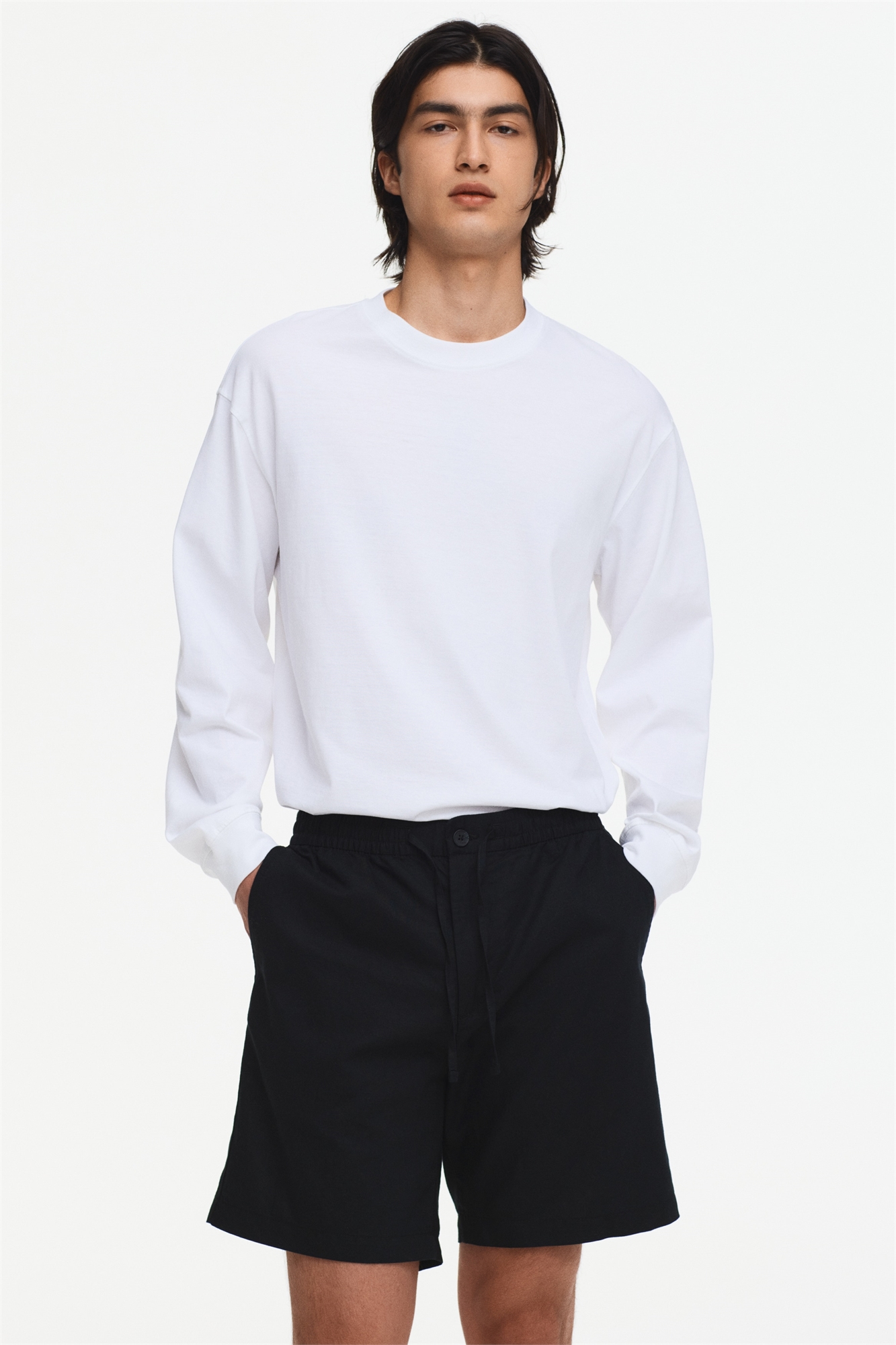 Шорты из воздушной хлопчатобумажной и льняной ткани с закрытой резинкой и шнурком на талии, застежкой-молнией и пуговицей, карманами в боковых швах и задним карманом с отворотом. Классический крой для удобства ношения и классического силуэта. Смесь хлопка и льна сочетает в себе мягкость хлопка и прочность льна, создавая красивую текстурированную ткань, которая дышит и идеально драпируется.