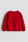 Топ из мягкой толстовочной ткани с большой аппликацией в виде банта спереди. Круглый вырез в рубчик, спущенные плечи, манжеты и подол в рубчик.
