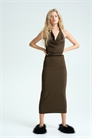 Приталенное платье из джерси длиной до колен с вырезом-лодочкой и широкими завязками по линии талии. Складки по бокам создают эффект драпировки. Верхняя часть на подкладке.