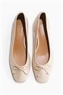 Туфли из ткани с покрытием, с закругленными носками, декоративным бантом спереди и низким каблуком-блок. Атласная подкладка.
