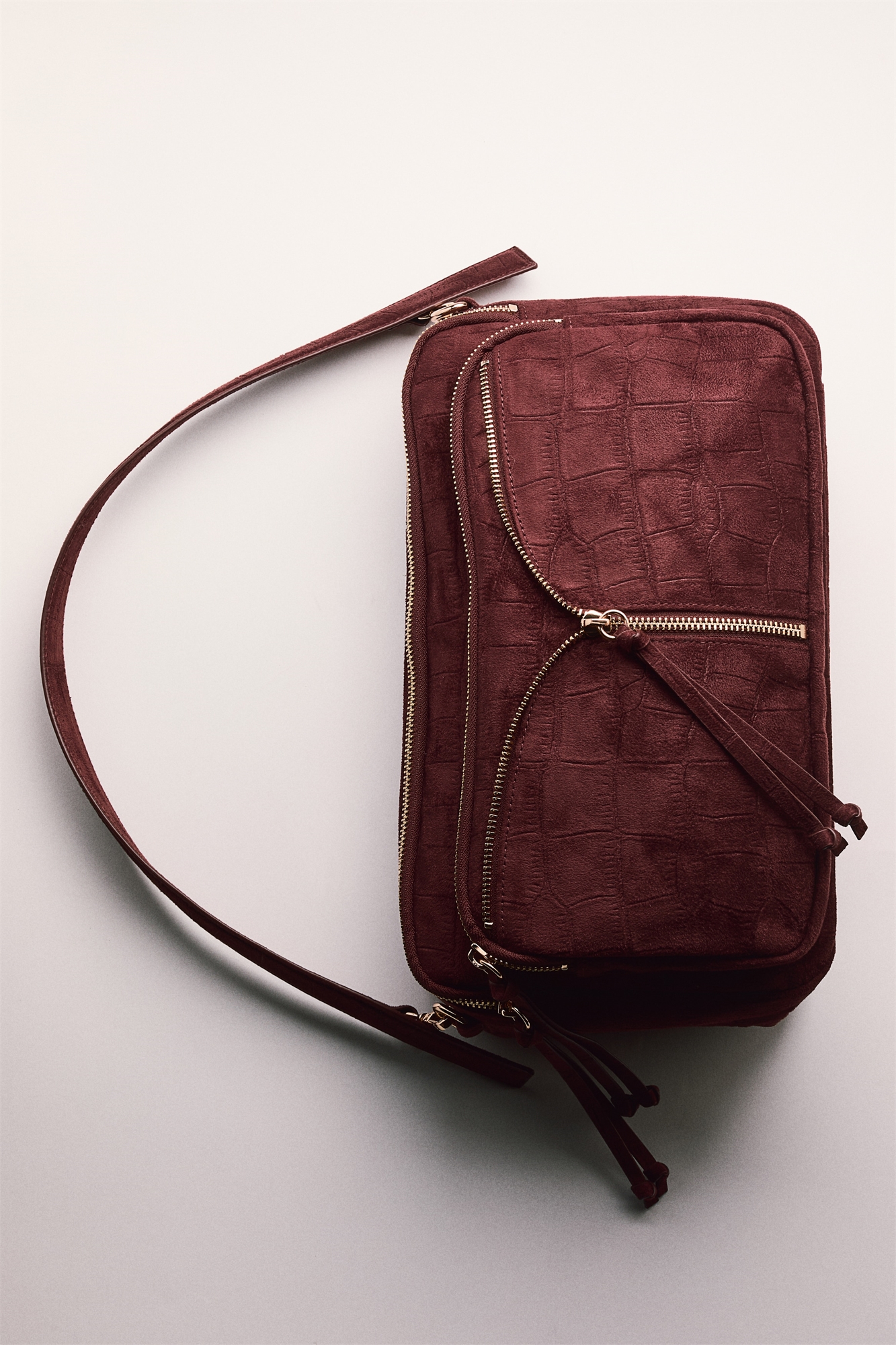 Сумка через плечо со съемной ручкой, застежкой-молнией сверху и внешним отделением на молнии с декоративной застежкой. На подкладке.