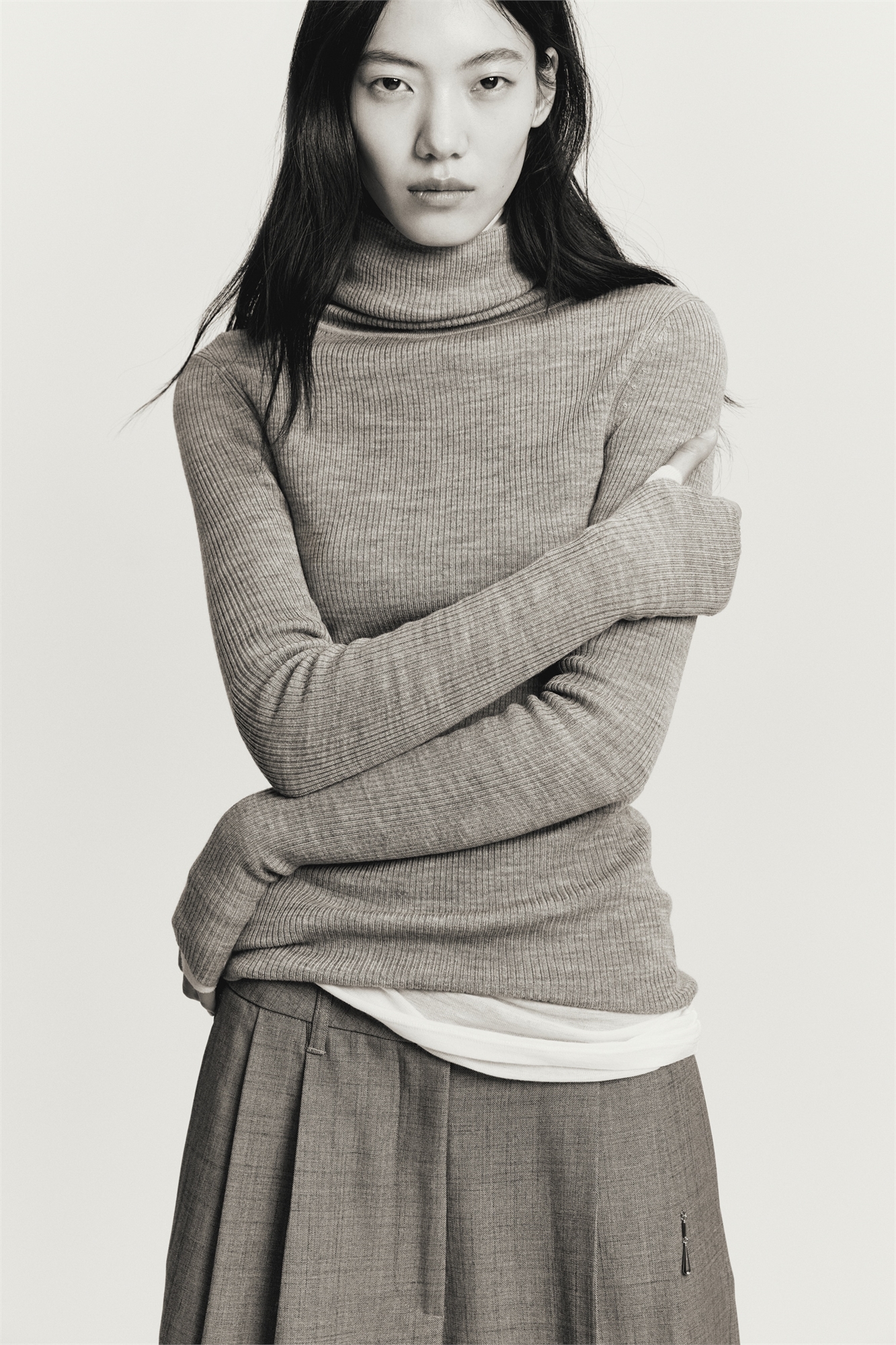 Облегающий топ из мягкой мериносовой шерсти в рубчик с горловиной и удлиненными рукавами с отверстиями для больших пальцев.