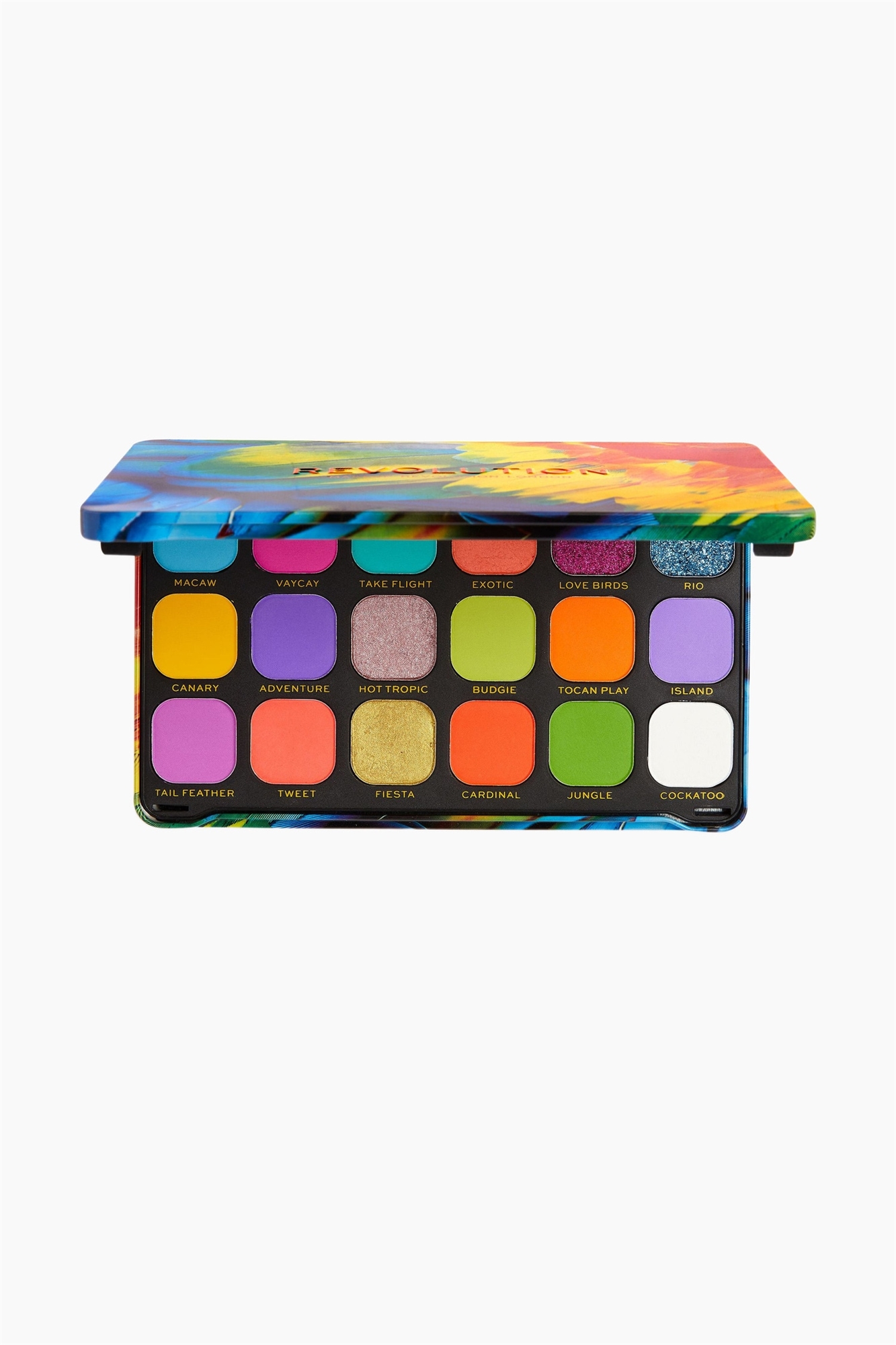 Воссоздайте рай круглый год с помощью этого тропического чуда. Не нужно ждать вайкей, с этой палитрой вы будете чувствовать себя экзотично даже при сером небе. Содержащая пылающие матовые оттенки, сверкающие глиттеры и мягкие на ощупь кремовые шиммеры, эта палитра - настоящая фиеста. Дайте волю своему творчеству, используя морской блюз, летний апельсин, тропический пурпур, свежую зелень и канареечный желтый.