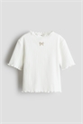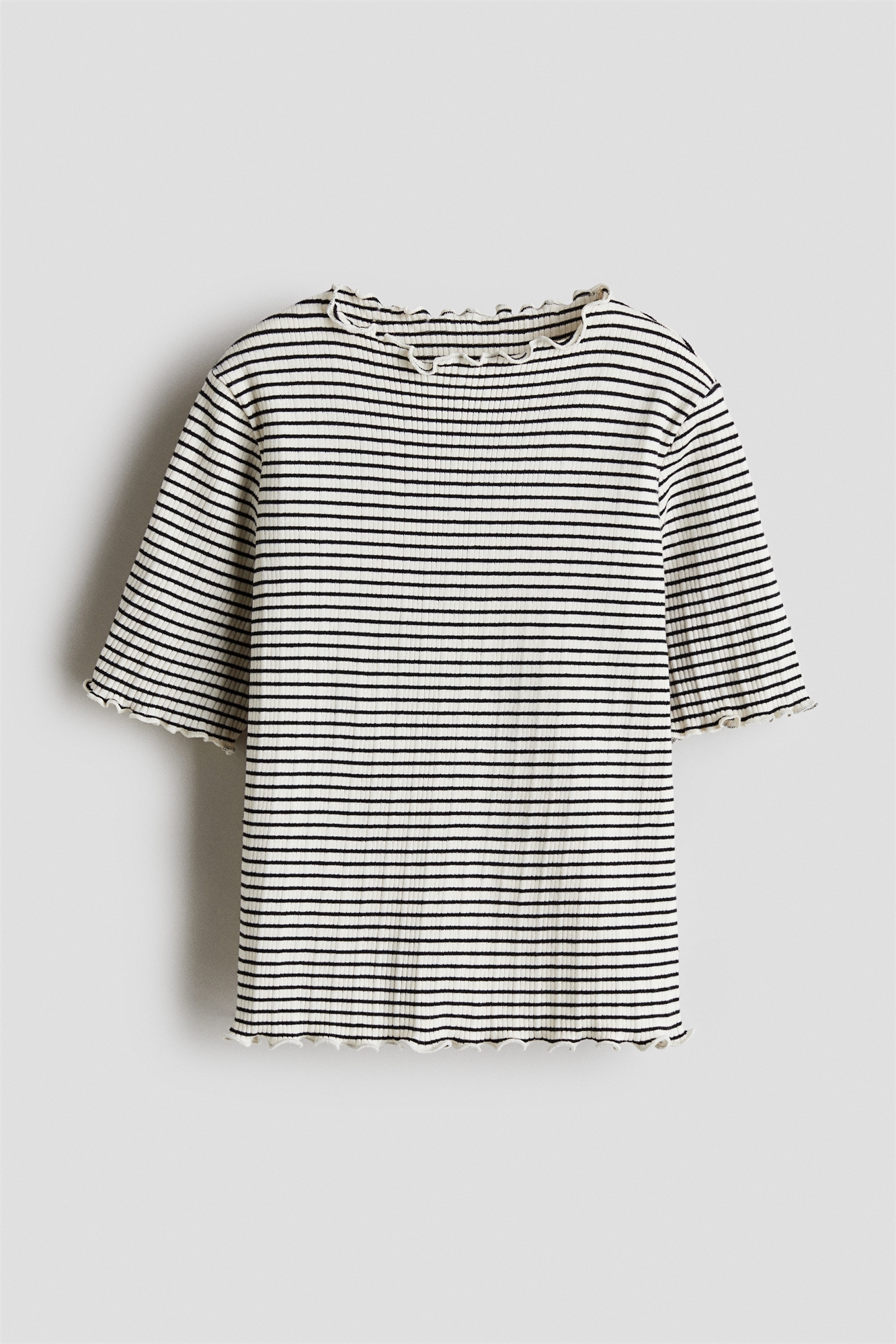 Топ из ребристого хлопкового джерси с оверлочными краями. Круглый вырез и короткие рукава.