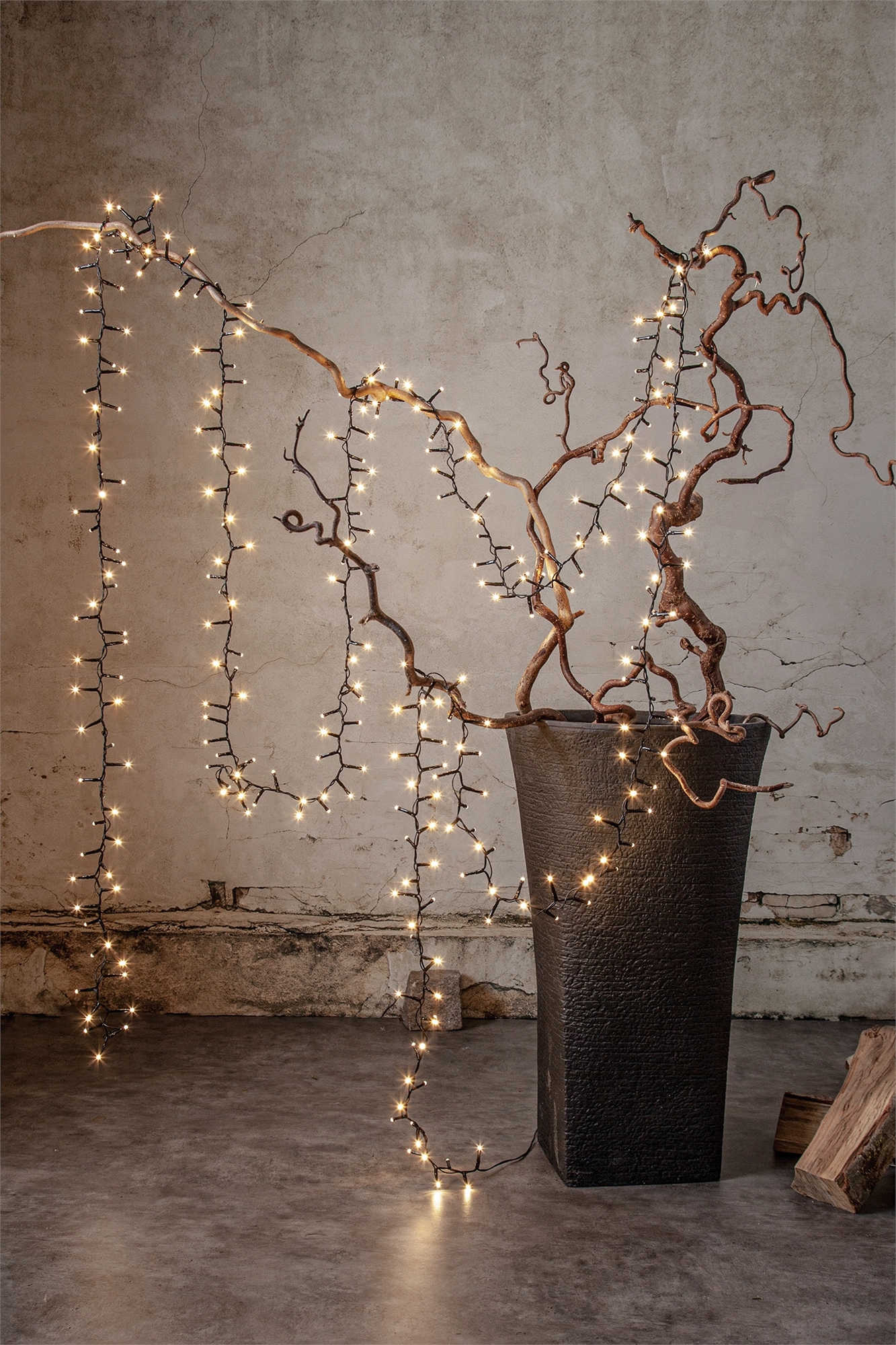 Сказочные огоньки с 1200 чудесными теплыми белыми светодиодами. Кабель длиной 24 м с лампочками, расположенными с интервалом 2 см. Идеально подходит для сада. Длина соединительного кабеля: 5 м.