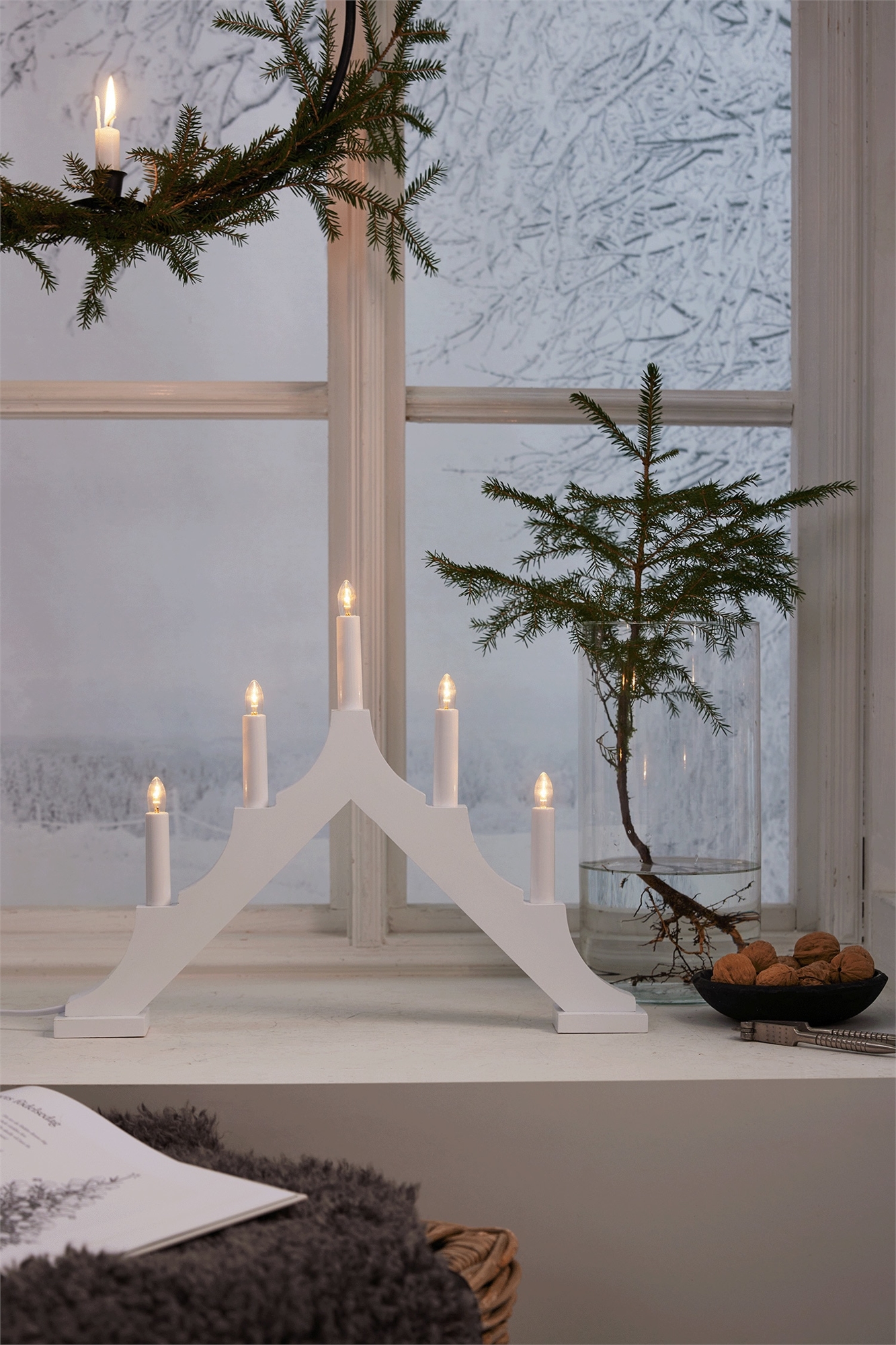 Деревянный адвент-подсвечник. Классический подсвечник с современным оттенком. Благодаря красивому световому рисунку он создает чудесную рождественскую атмосферу на окне. Ширина: 44 см. Высота: 33,50 см. Продукт со знаком FSC®.