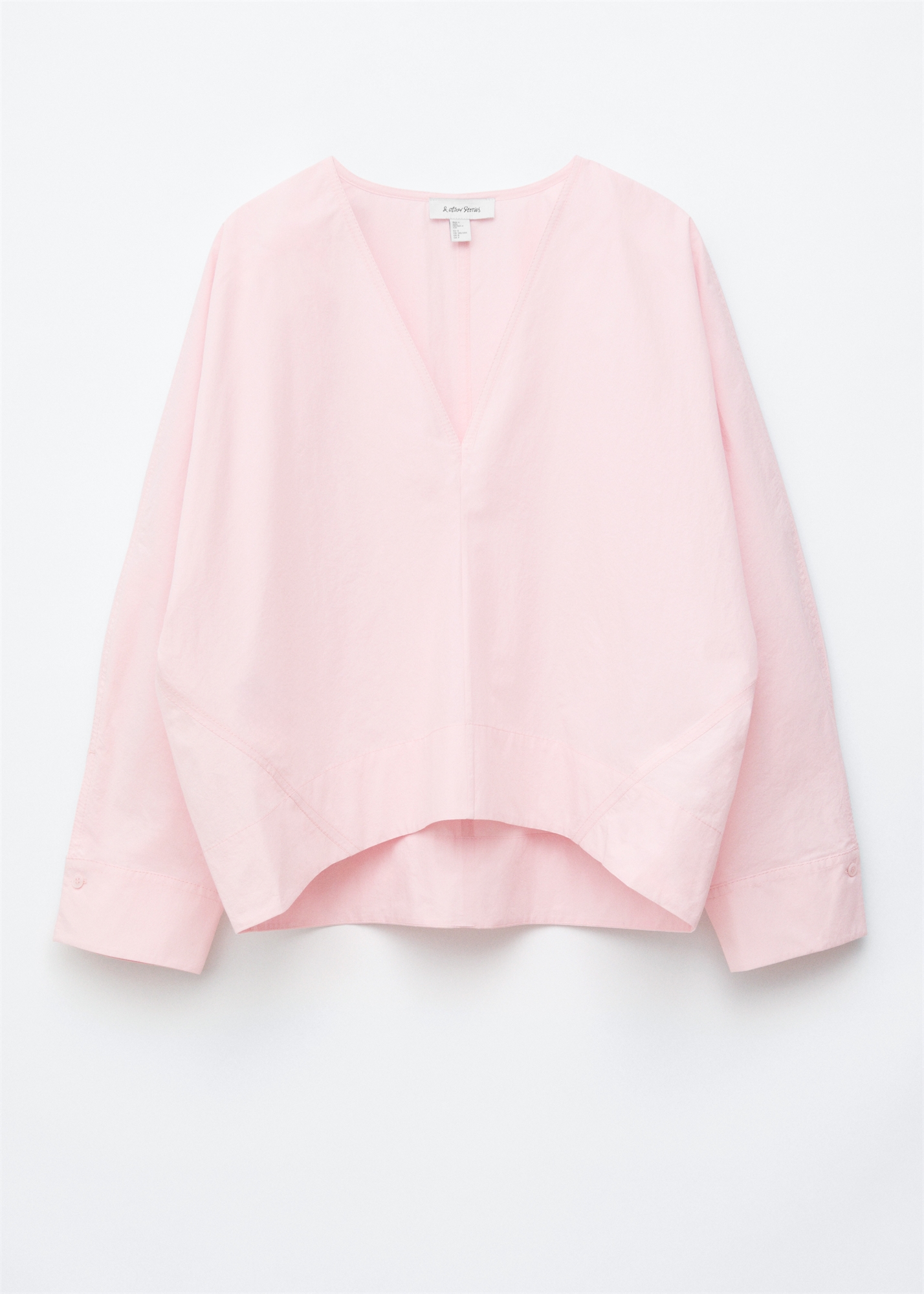Эта блузка, легко сочетающая в себе баланс и структуру, изготовлена из плотного хлопка и имеет скульптурный силуэт с глубоким V-образным вырезом и длинными рукавами в форме кокона. Сочетайте ее с джинсами или свободной одеждой. Манжеты на пуговицах.