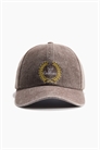 Кепка из хлопчатобумажной саржи с мотивом на передней части и вышитыми отверстиями в верхней части. Хлопчатобумажная потница и регулируемая застежка с металлическим креплением сзади.