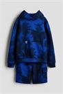 Комплект из худи и шорт из ткани для свитшотов с мягкой ворсистой внутренней стороной. Худи с капюшоном на подкладке из джерси, заниженными плечами и длинными рукавами. Карман-кенгуру и ребристые манжеты и подол. Шорты с эластичным поясом на шнурке, имитацией ширинки, боковыми карманами с отворотом и карманами на ногах с клапанами.