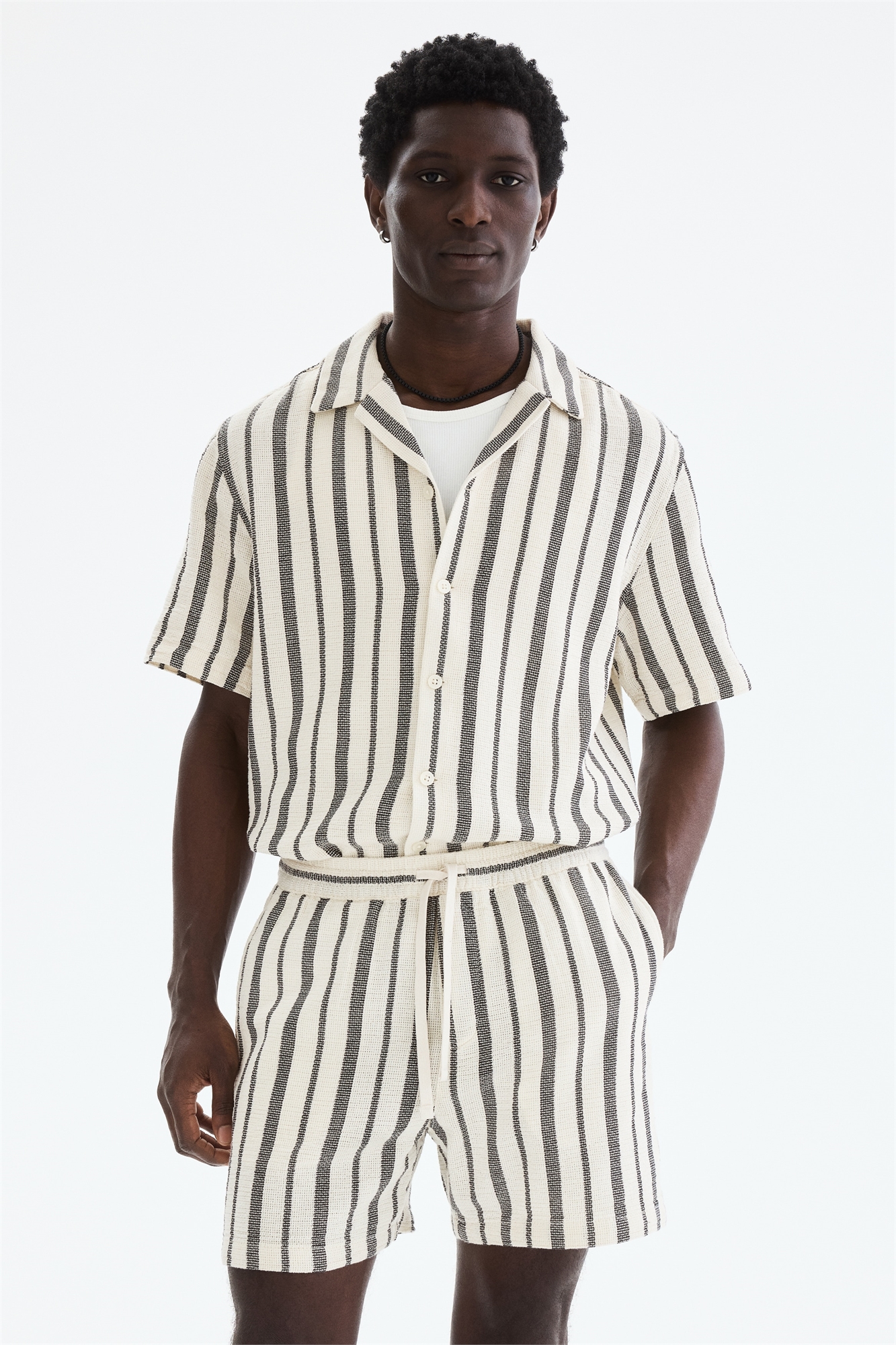 Шорты с фактурным переплетением из смесовой ткани на основе хлопка, с эластичным поясом на шнурке. Незаметные боковые карманы и задний карман с отворотом. Классический крой и прямой силуэт для комфортной носки.