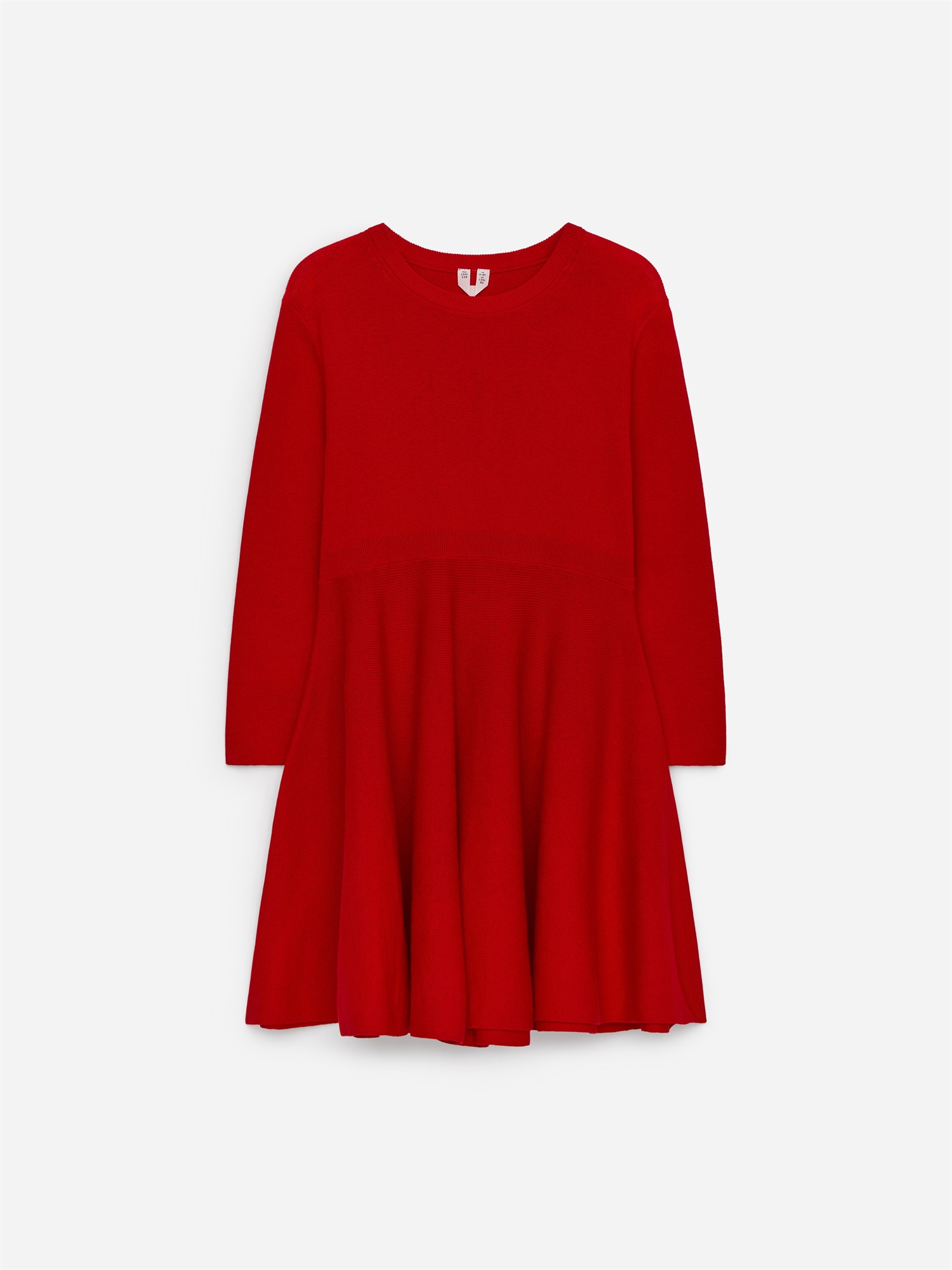 Трикотажное платье из мягкого хлопка. Фасон с длинными рукавами и ребристым узором на талии и у выреза горловины.
