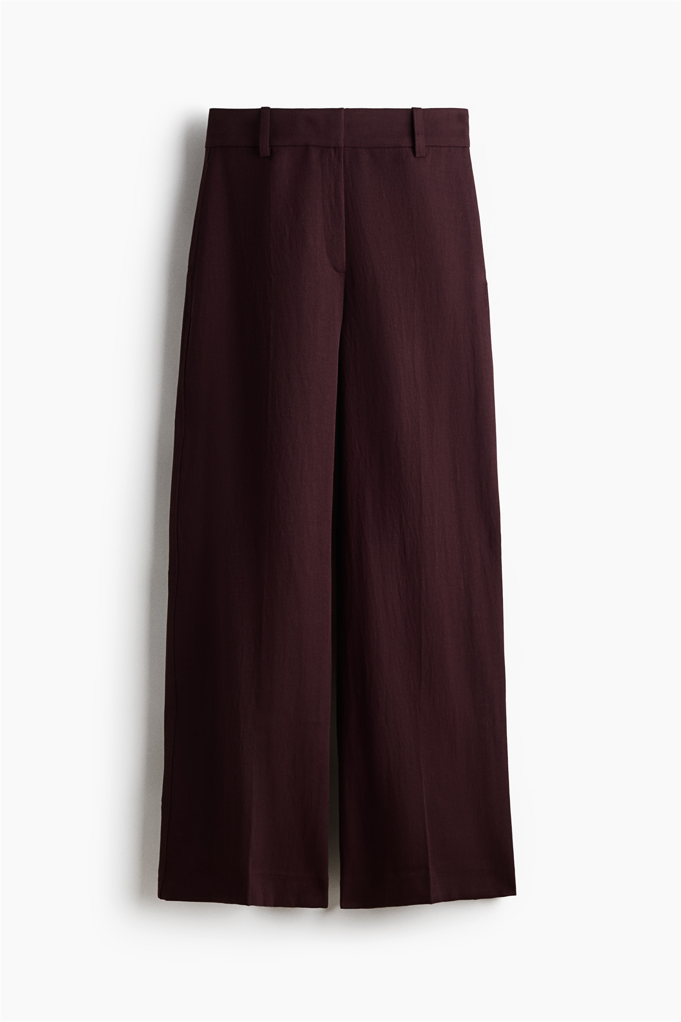 Брюки с высокой талией из тканого материала, содержащего лен и вискозу, с застежкой-молнией и крючком-застежкой. Незаметные боковые карманы, имитация кармана с отворотом сзади и широкие брючины с заутюженными складками спереди и сзади.