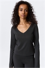 Топ с длинными рукавами, широким V-образным вырезом и мягко расклешенными рукавами. Свободный крой придает изделию легкую динамику, благодаря чему его можно носить как с повседневной, так и с нарядной одеждой.
