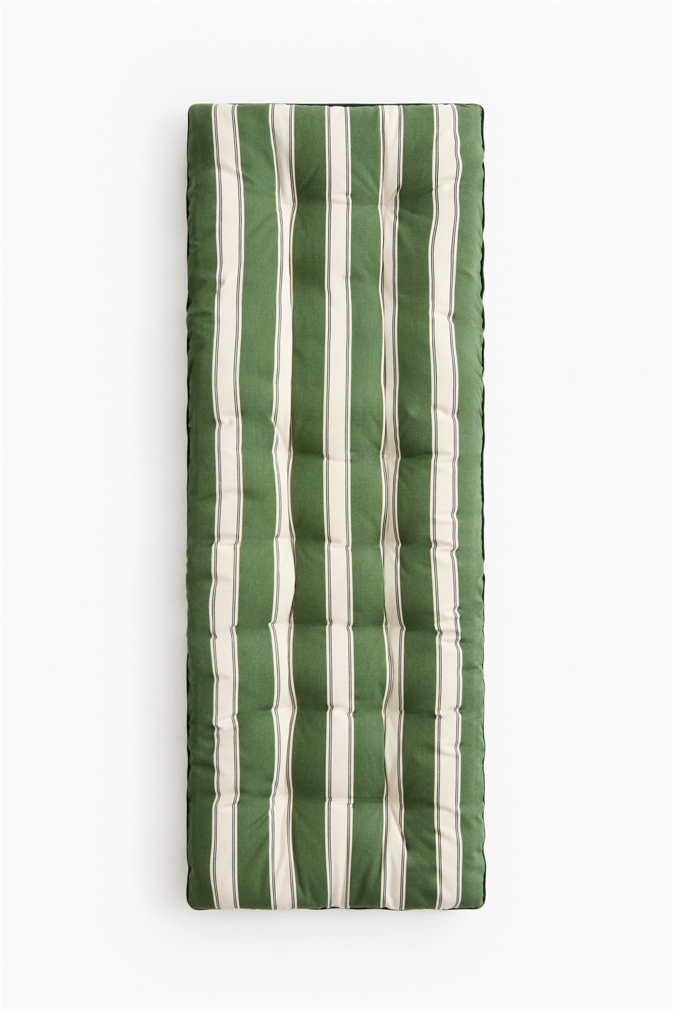 Большая мягкая подушка для сиденья из водоотталкивающего хлопчатобумажного полотна с стегаными узелками и кантом по краям. Идеально подходит для скамейки или кушетки и может использоваться на открытом воздухе.