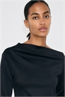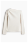 Топ с длинными рукавами из плотного трикотажа с асимметричным вырезом и складками на одном плече для создания эффекта драпировки.