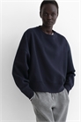 Свитшот оверсайз из ткани с мягкой изнанкой. Круглый вырез с ребристой отделкой, спущенные плечи и длинные рукава. Ребристые манжеты и подол.