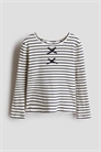 Топ из мягкого ребристого хлопкового джерси. Круглый вырез с отделкой пико, длинные рукава и прямой подол.
