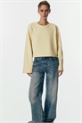 Короткий топ из трикотажа интерлок с круглым вырезом с ребристой отделкой, слегка спущенными плечами и длинными рукавами.