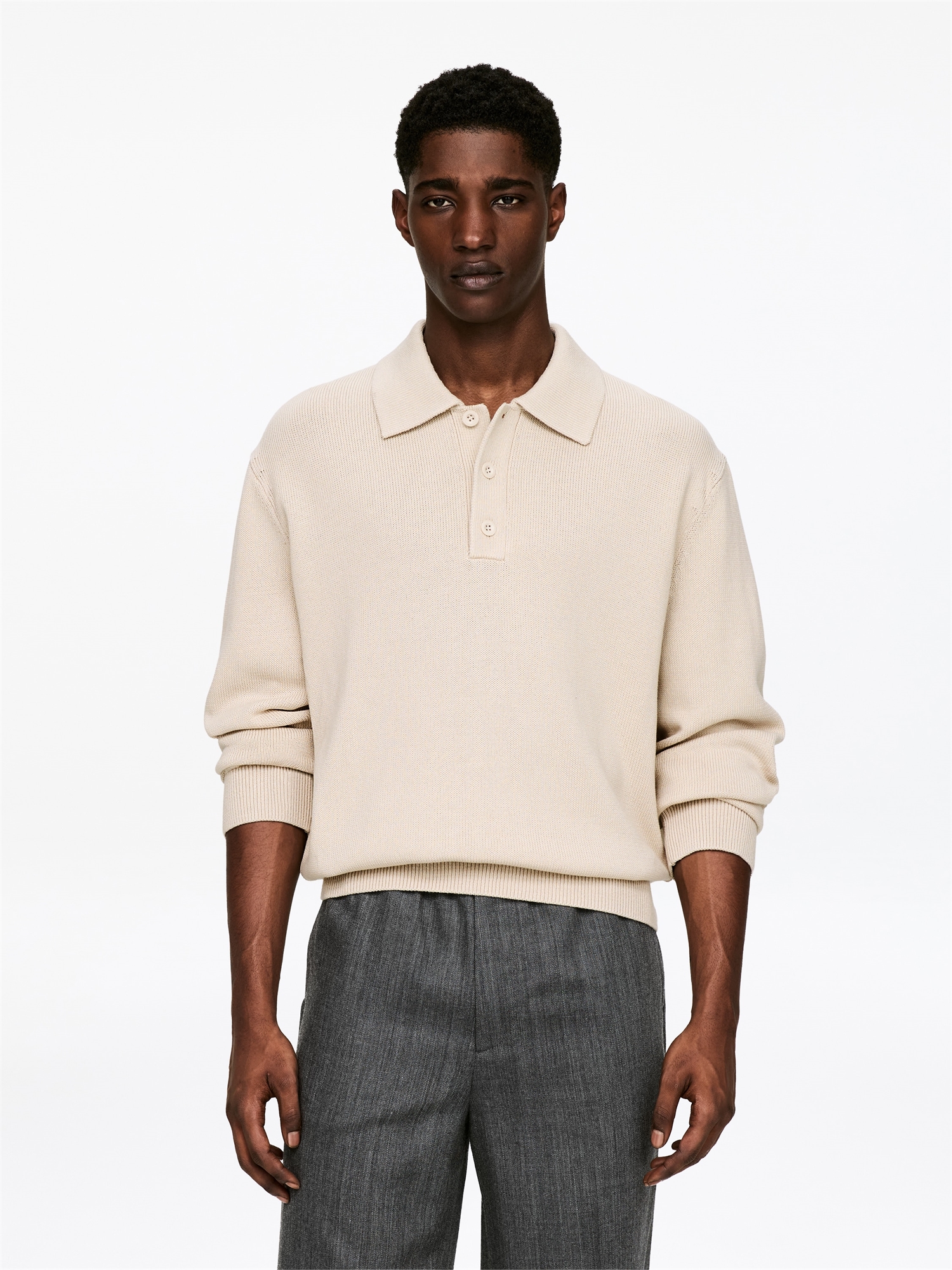 Смесь хлопка и лиоцелла придает гладкость этой тонкой вязаной рубашке-поло. Модель с классическим воротником-поло и полузастежкой на 3 пуговицы имеет свободный крой. Детали: манжеты и подол из ребристой вязки.