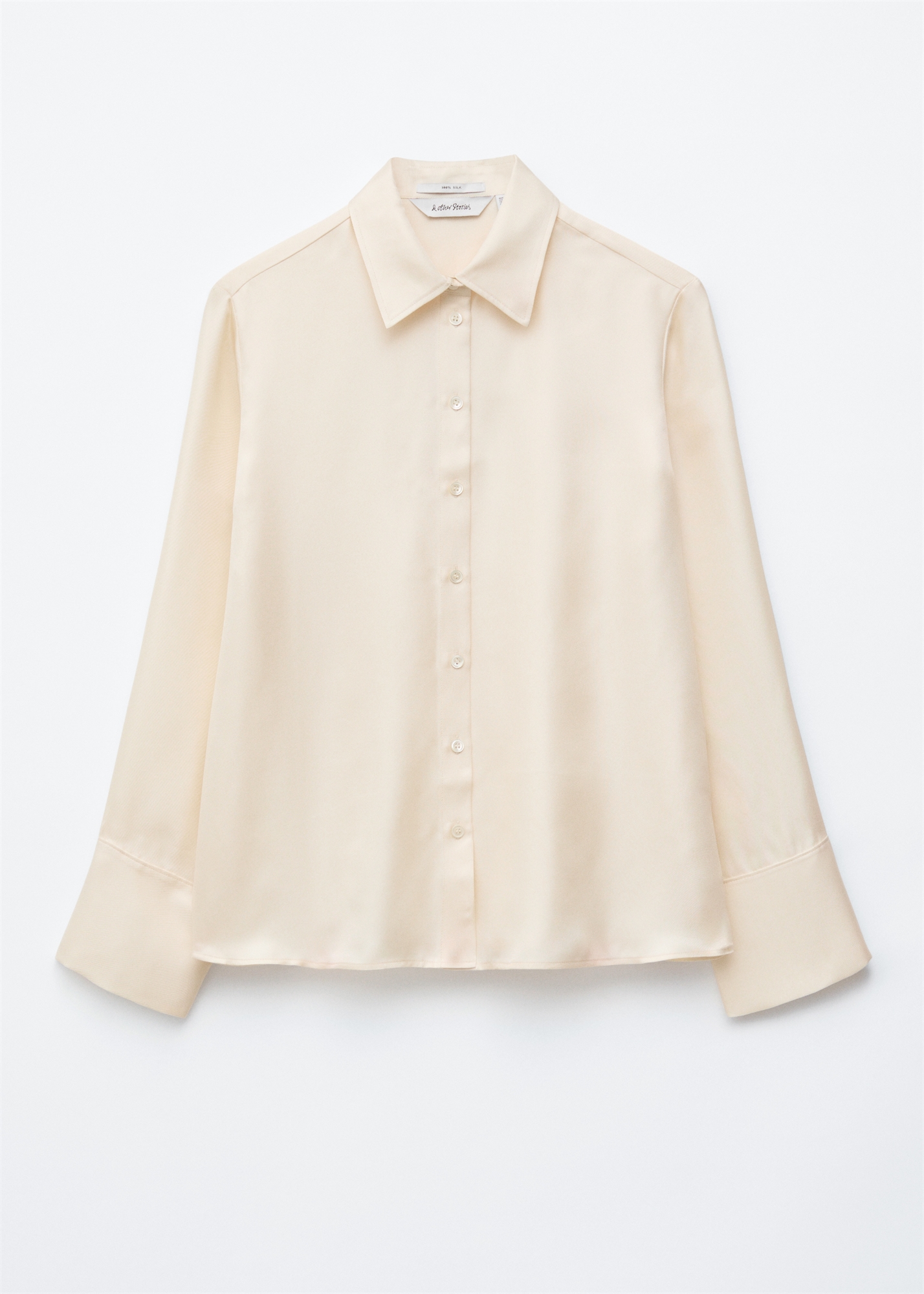 Эта рубашка непринужденного силуэта сшита из шелка тутового дерева с блестящей отделкой. Классический воротник, широкие манжеты, застегивающиеся на одну пуговицу, и застежка на пуговицы спереди. Длина рубашки: 64,5 см / 25,4 дюйма (EU 38 / UK 10 / US 6)