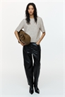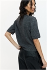Короткая футболка из мягкого трикотажа с ребристой горловиной и прямым подолом. Ребристые манжеты и подол.