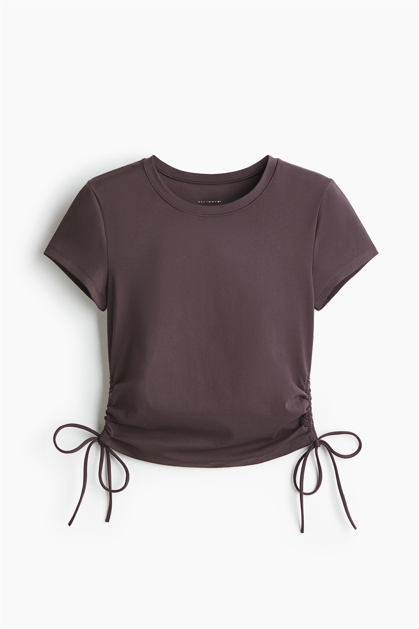 Облегающий топ из функциональной ткани SoftMove™, которая обеспечивает максимальную мягкость и комфорт, а также контурную поддержку, созданную для каждого движения. Имеет круглый вырез, слегка изогнутый подол и драпированные бока с регулируемыми завязками для индивидуальной посадки.
