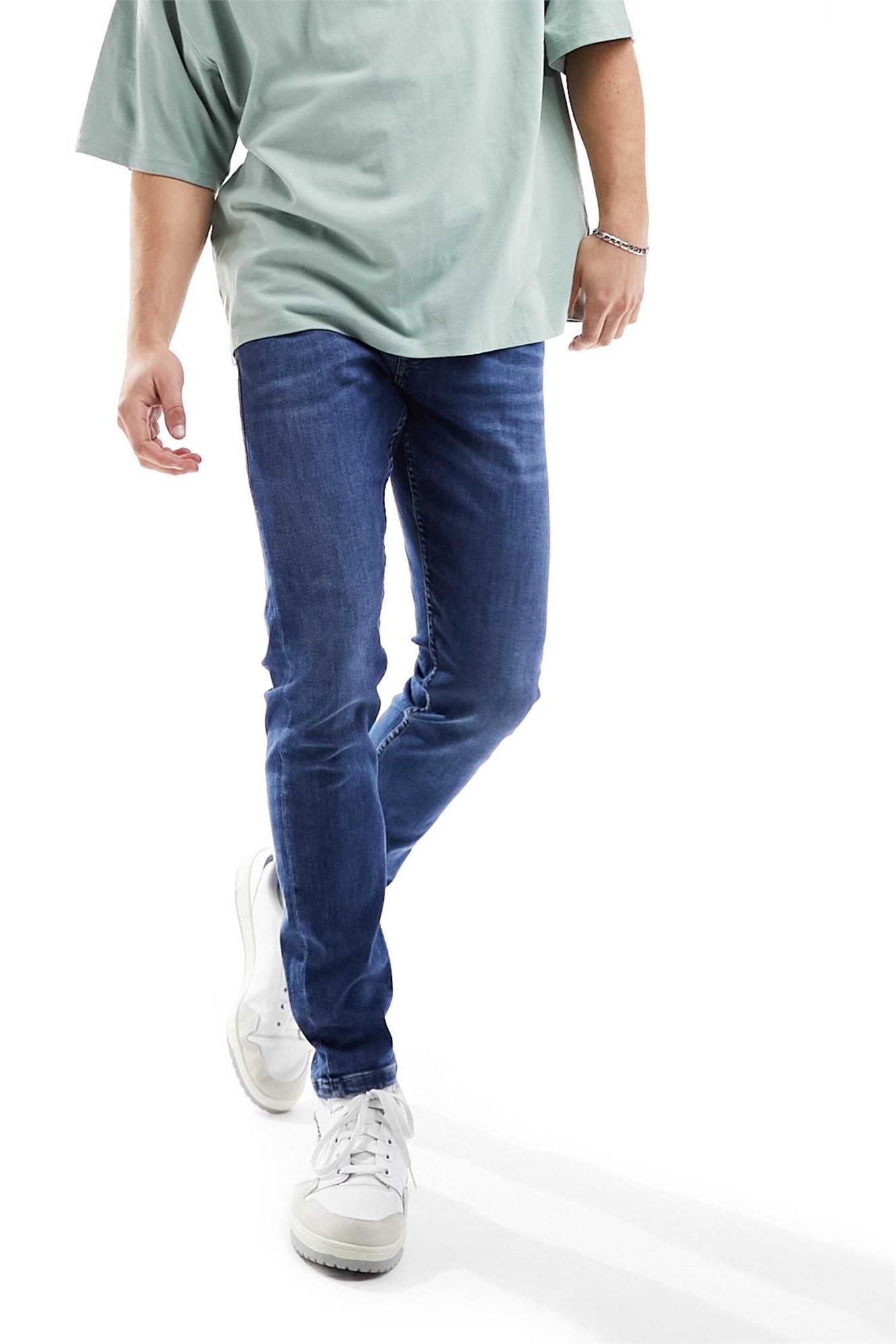 Эластичный деним: средне-синий оттенок Основной материал: 83% хлопок, 15% полиэстер, 2% эластан.