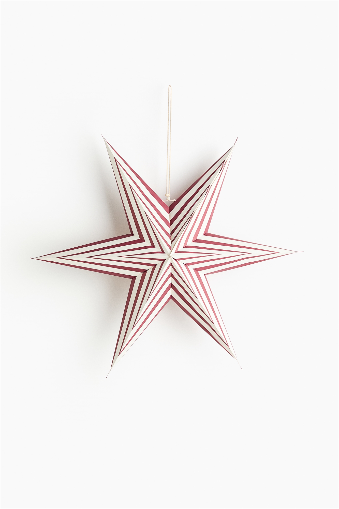 Бумажный абажур в виде звезды с темно-красными полосами. Добавьте комплект шнуров и источник света, чтобы зажечь звезду и насладиться теплым, атмосферным свечением.