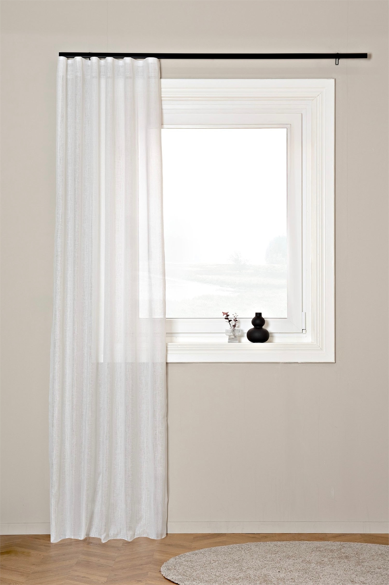 Вуалевая штора с легкой текстурой и мягким блеском. Комбинированная лента для четырех вариантов подвешивания: непосредственно на штангу, на крючки для глубоких складок, на крючки для штор или в современном стиле "волна". Крючки для штор в комплект не входят. Одна длина шторы в упаковке.