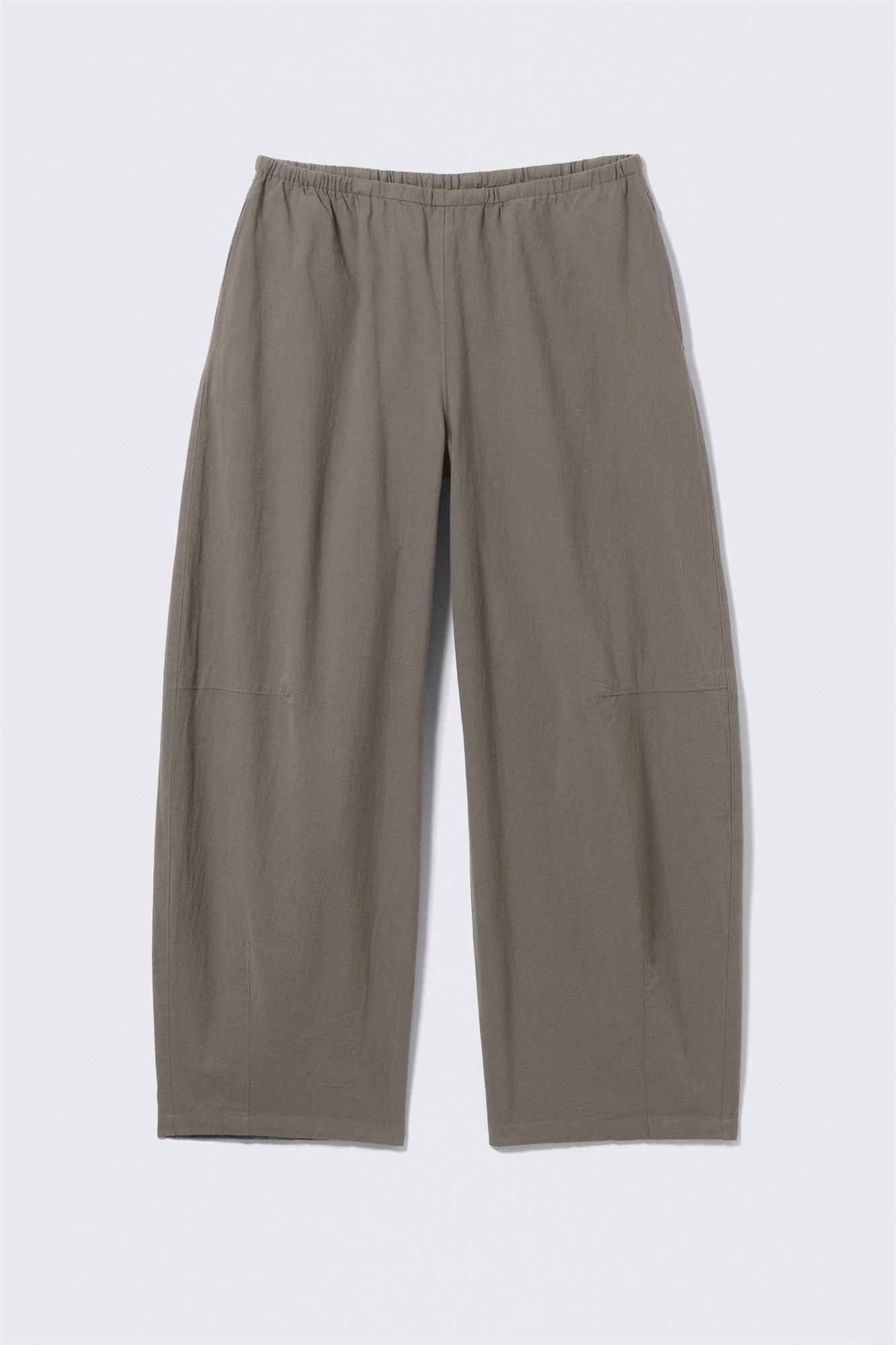 Брюки с низкой посадкой и свободным кроем, изготовленные из хлопка для удобства и воздухопроницаемости. Модель с эластичным поясом и внутренними шнурками, боковыми карманами и формирующими вытачками на коленях и по низу, которые придают силуэту утонченную форму.