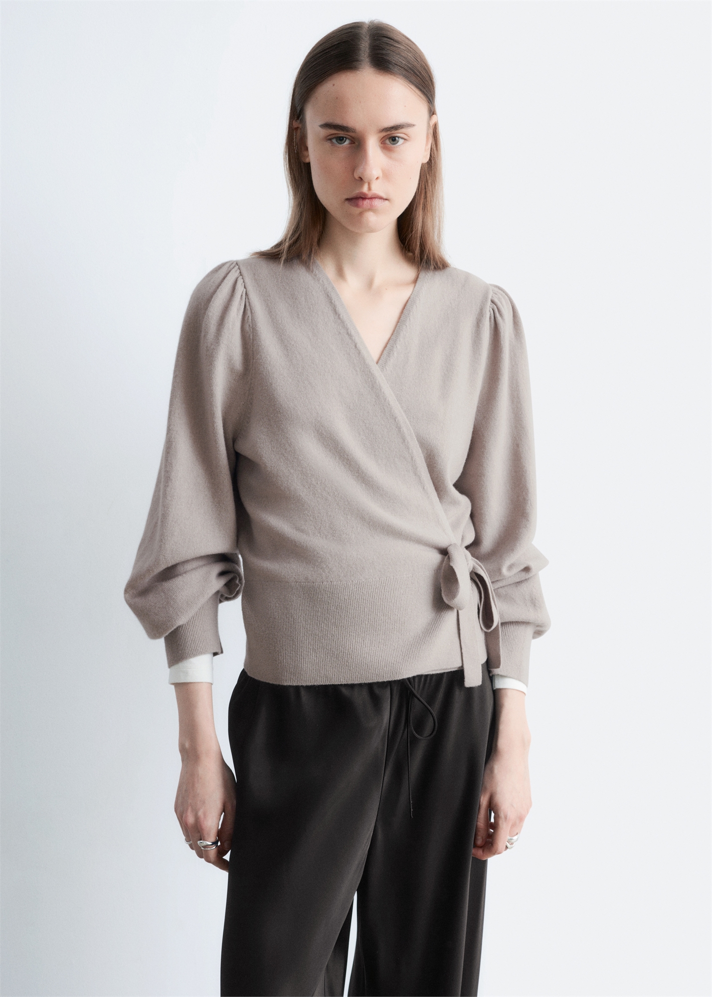 Этот вязаный кардиган из мериносовой шерсти с завязками, длинными пышными рукавами, ребристыми манжетами и подолом. Регулярный крой Длина кардигана: 56 см (размер S)