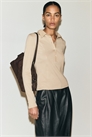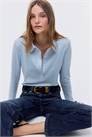 Приталенный топ из хлопкового джерси с воротником и застежкой на пуговицы из тканого материала. Кокетка сзади, длинные рукава и формирующие швы спереди.