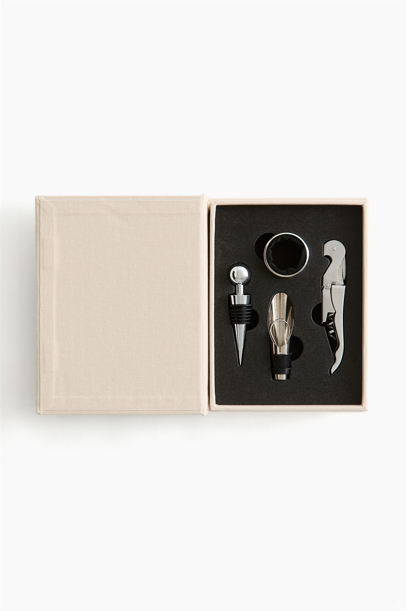 Откройте для себя необходимый набор для совершенствования винного опыта - изысканный набор инструментов в элегантной коробке, похожей на книгу, который станет идеальным подарком. Внутри вы найдете открывалку, пробку, наливное отверстие и воротничок, каждый из которых служит незаменимым инструментом для ценителей вина. Все изделия изготовлены из нержавеющей стали и безопасны для мытья в посудомоечной машине.