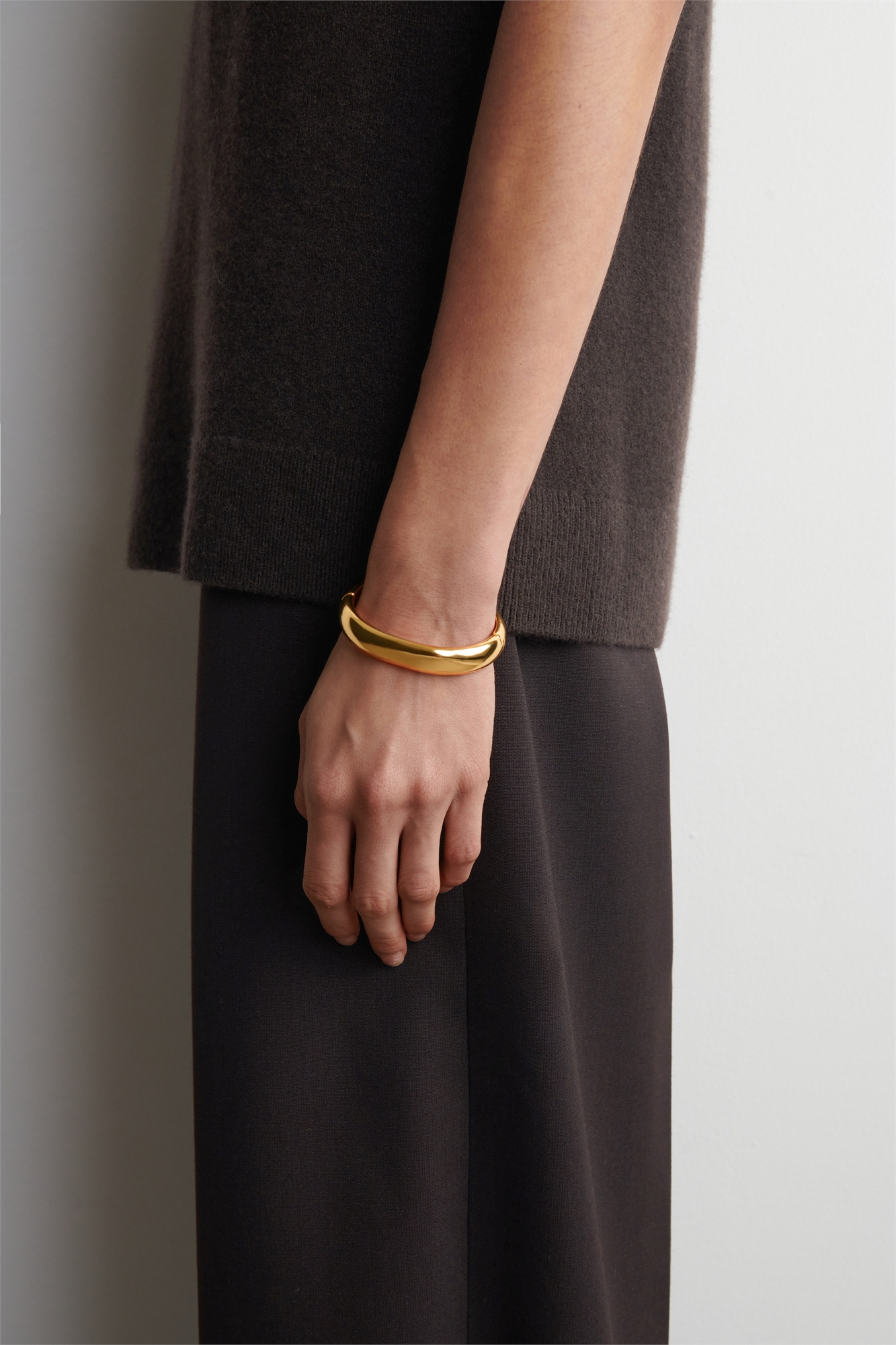 Этот изысканный браслет прост и в то же время эффектен. Он изготовлен из переработанной латуни, покрытой золотом для полированного блеска, и имеет изогнутую форму, обхватывающую запястье. Сочетайте его со смешанными металлами, чтобы создать современный образ многослойности. Застежка-петляЛатунь - универсальный материал, который может быть переработан множество раз без потери своих свойств Корпус: 100% переработанная латунь Post-consumer. Покрытие: 100% золото. Без учета отделки