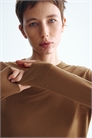 Джемпер из мягкой мериносовой шерсти с круглым вырезом, отделанным резинкой, и длинными рукавами. Резинка на манжетах и по низу.