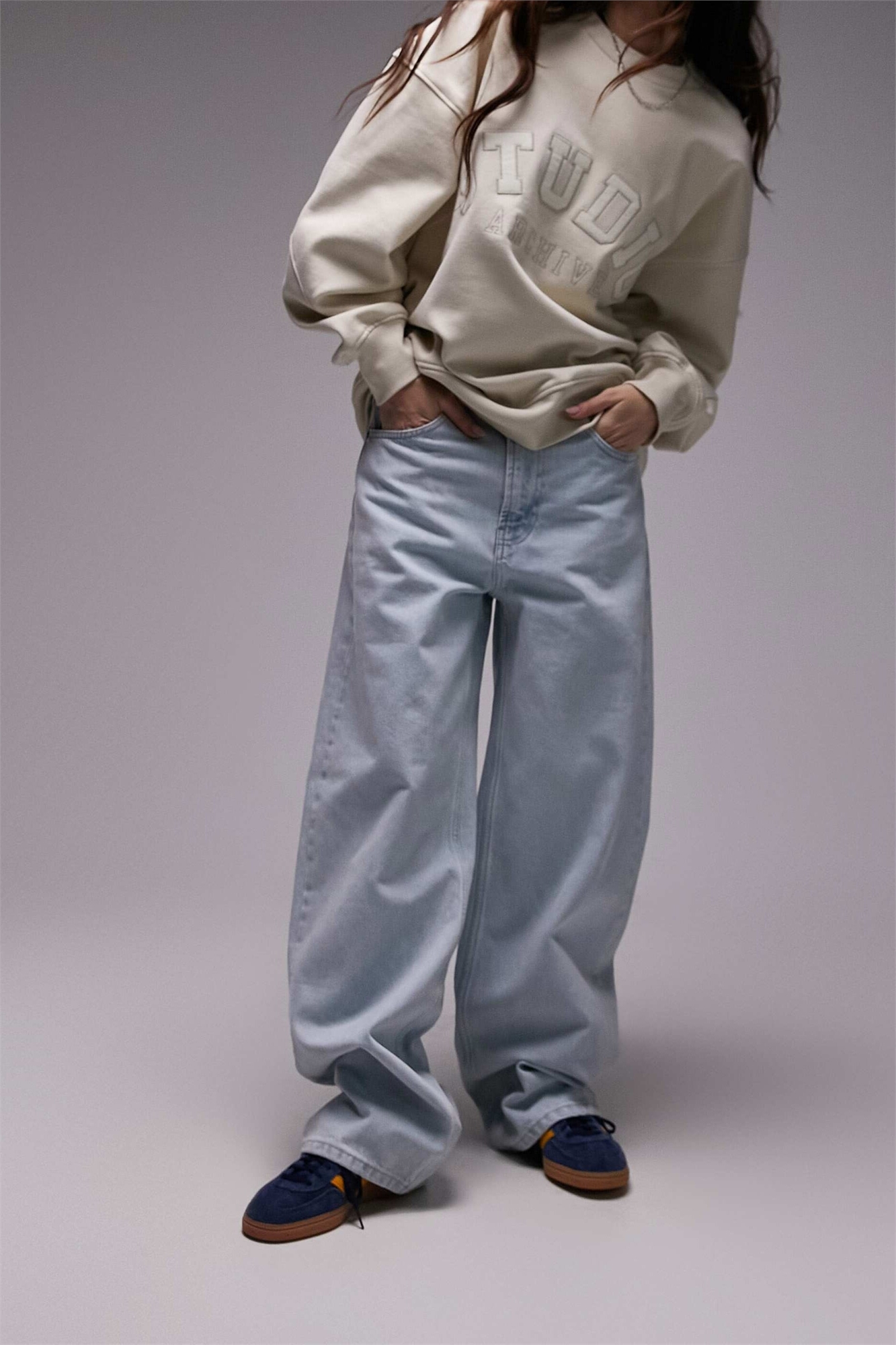 Неэластичный деним: светло-голубой оттенок Основной материал: 100% хлопок.