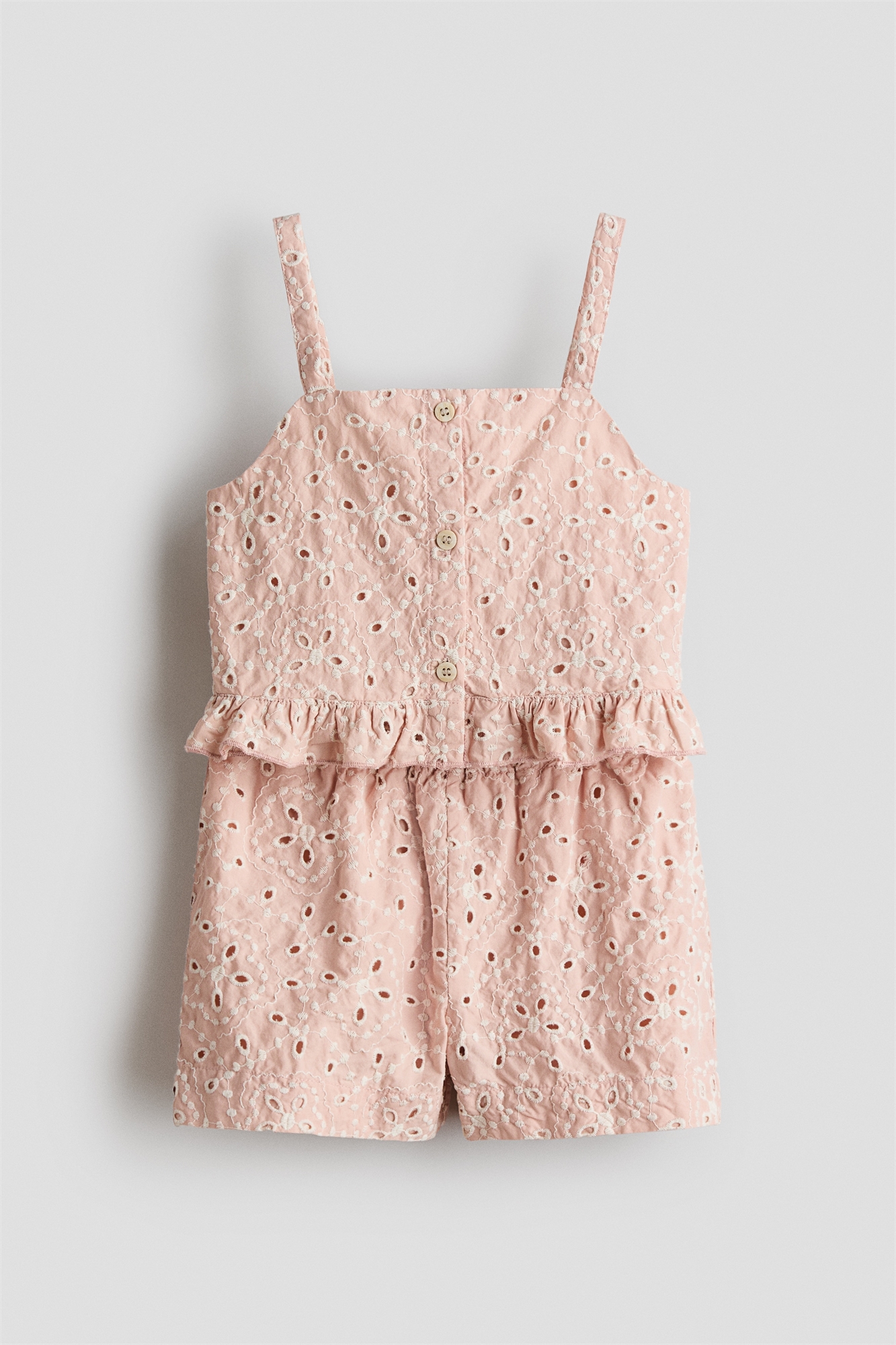 Комплект из топа на бретелях и шорт из мягкой ткани из высококачественного хлопка с английским кружевом. Топ с квадратным вырезом, пуговицами спереди, узкими бретелями, сборками на спине и оборкой по низу. Шорты с эластичным поясом. На подкладке. Коллекция H&M Adorables — это тщательно подобранная подборка удобных и качественных вещей с неподвластным времени шармом.