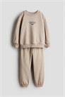 Комплект из топа и джоггеров из легкой толстовочной ткани с узорами. Топ с круглым вырезом с ребристой отделкой, спущенными плечами и длинными рукавами с декоративными швами. Ребристые манжеты и подол. Джоггеры с эластичным утягивающим поясом, боковыми карманами и эластичной отделкой по подолу.