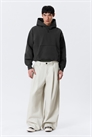 Пара брюк-чино свободного кроя со средней посадкой, мешковатым силуэтом и широкими брючинами. Изготовлены из мягкого хлопкового твила, имеют складки спереди, косые боковые карманы и задние карманы с отворотом и закрепками. Оснащены широкими шлевками для ремня и застежкой-молнией с верхней пуговицей.