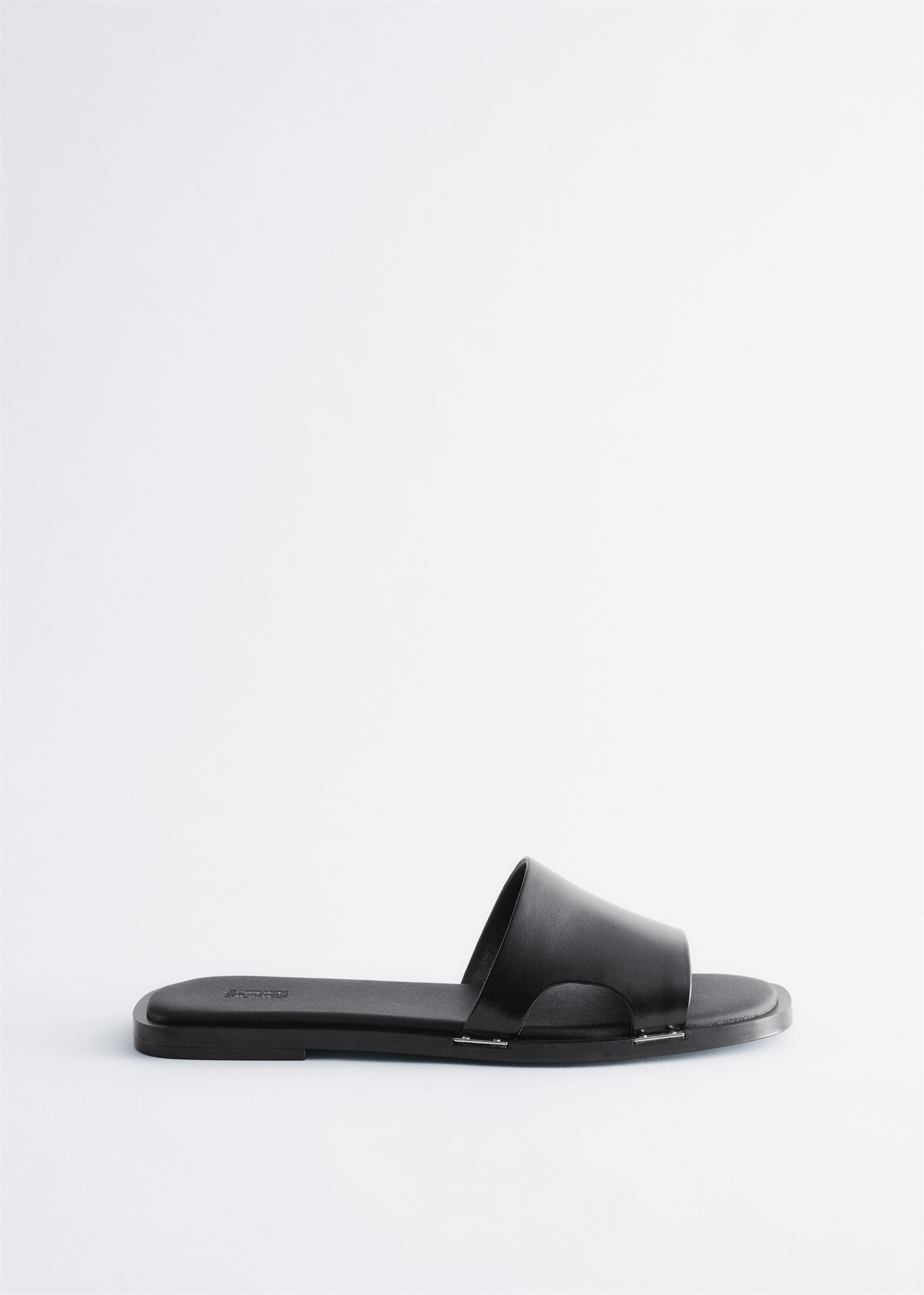 Эти сандалии, изготовленные из мягкой овечьей кожи, отличаются металлическими накладками, закреплёнными по бокам с помощью заклепок. Модель с квадратным носком обеспечивает удобство при надевании и устойчивую посадку.