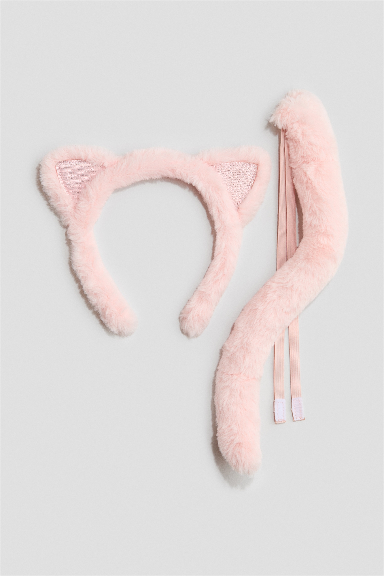 Комплект маскарадного костюма с повязкой Алисы и хвостом из мягкой пушистой ткани. Повязка Алисы с аппликацией в виде ушек. Хвост с эластичным поясом и застежкой на крючок и петлю.