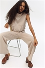 Приталенные брюки из тканого материала с застежкой-молнией и скрытой застежкой-крючком, имитацией передних карманов с клапанами и имитацией задних карманов с отворотом. Широкие брючины с заутюженными складками спереди.