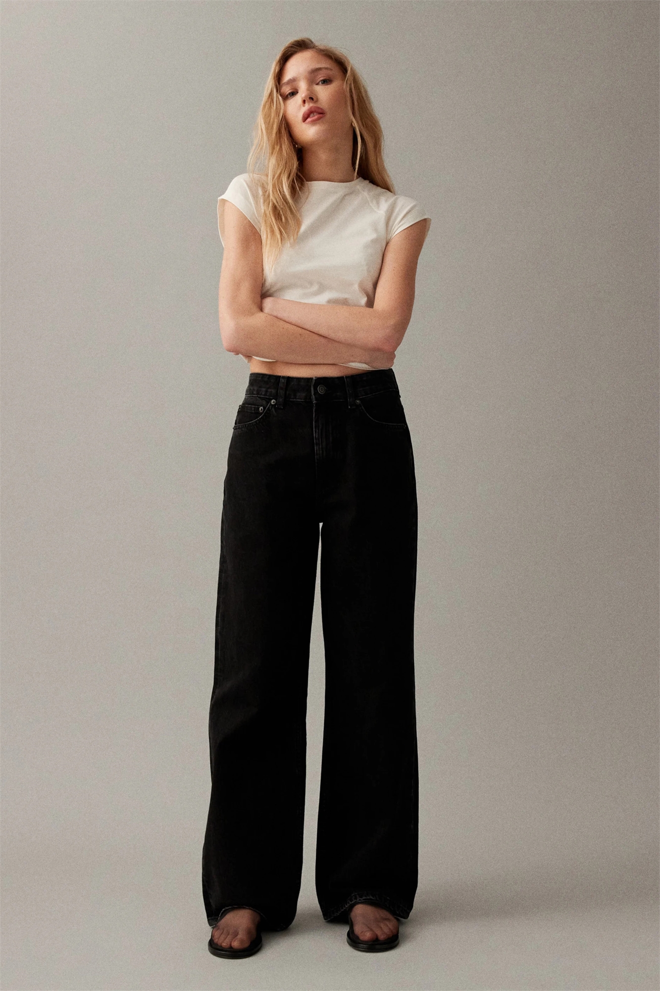 Джинсы «папа» с широкими брючинами
