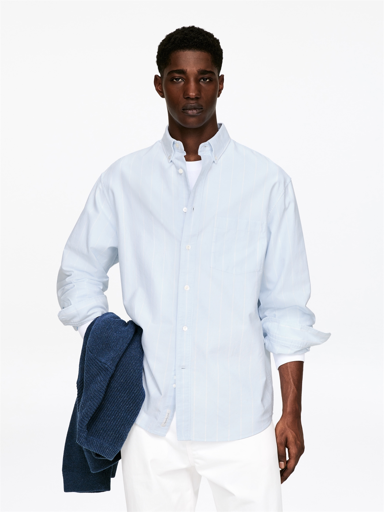 Рубашка оверсайз из хлопчатобумажной ткани оксфорд. С воротником на пуговицах и нагрудным карманом. Закругленный подол.