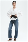Джинсы с 5 карманами из жесткого хлопкового денима, который сначала кажется твердым, но со временем становится мягким и свободным. Прямой крой с обычной посадкой от талии до бедер и более свободным прямым кроем от бедер до подола. Высокая талия с застежкой-молнией и пуговицей. Длина до щиколотки, рассчитанная на то, чтобы доходить до кости лодыжки.