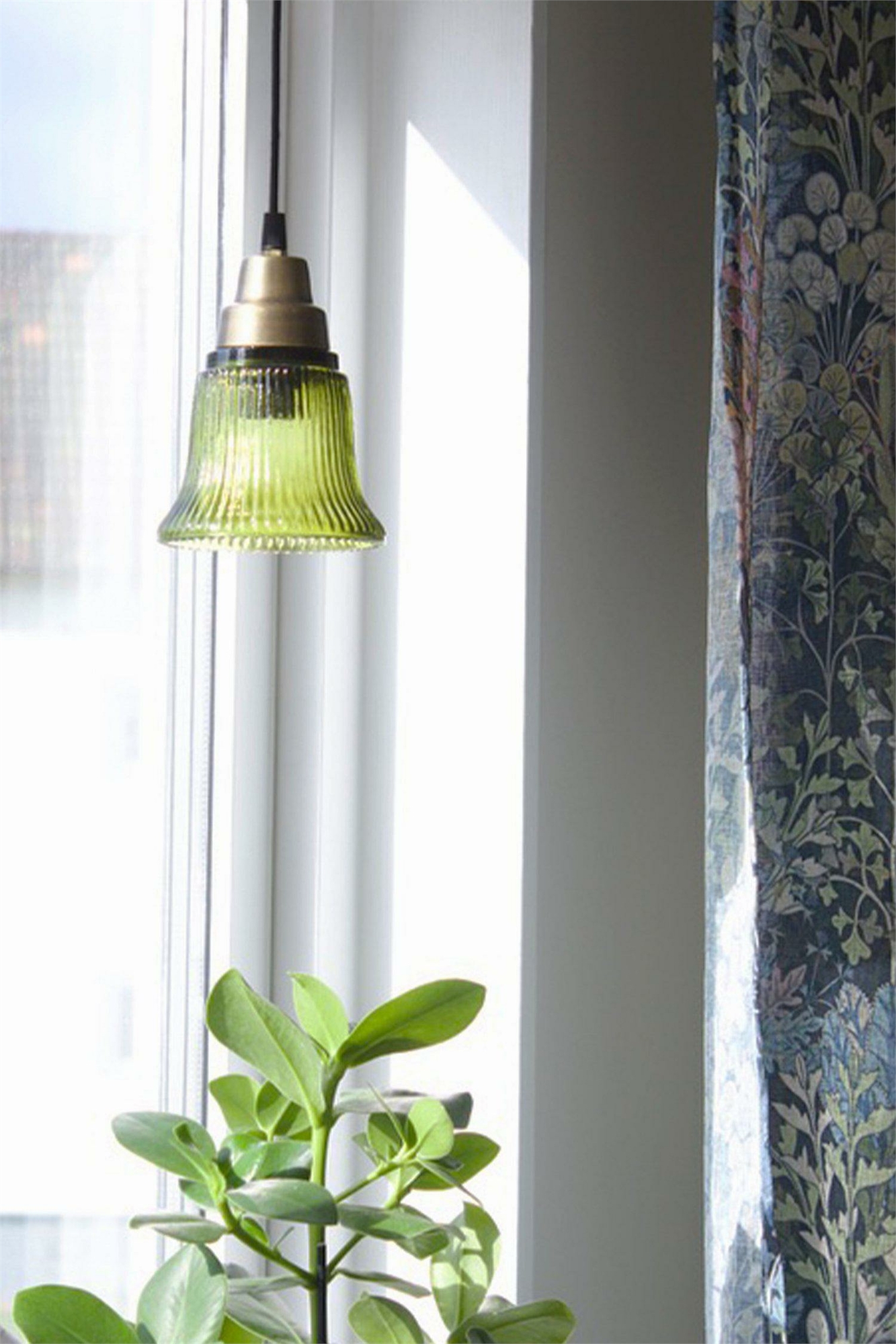 Небольшой подвесной светильник Emmi с колоколообразным ребристым стеклянным абажуром и металлическими деталями цвета латуни. Красивая подвесная лампа небольшого размера в классическом винтажном дизайне. Обеспечивает теплый свет благодаря зеленому ребристому стеклу. Черный текстильный кабель 3,5 м с плоской вилкой ЕС. Диаметр 12 см, высота 18 см. Патрон E27, макс. 25 Вт (для улучшения освещения рекомендуется использовать прозрачную маленькую светодиодную лампочку в форме мяча для гольфа). IP20. Лампочка в комплект не входит.