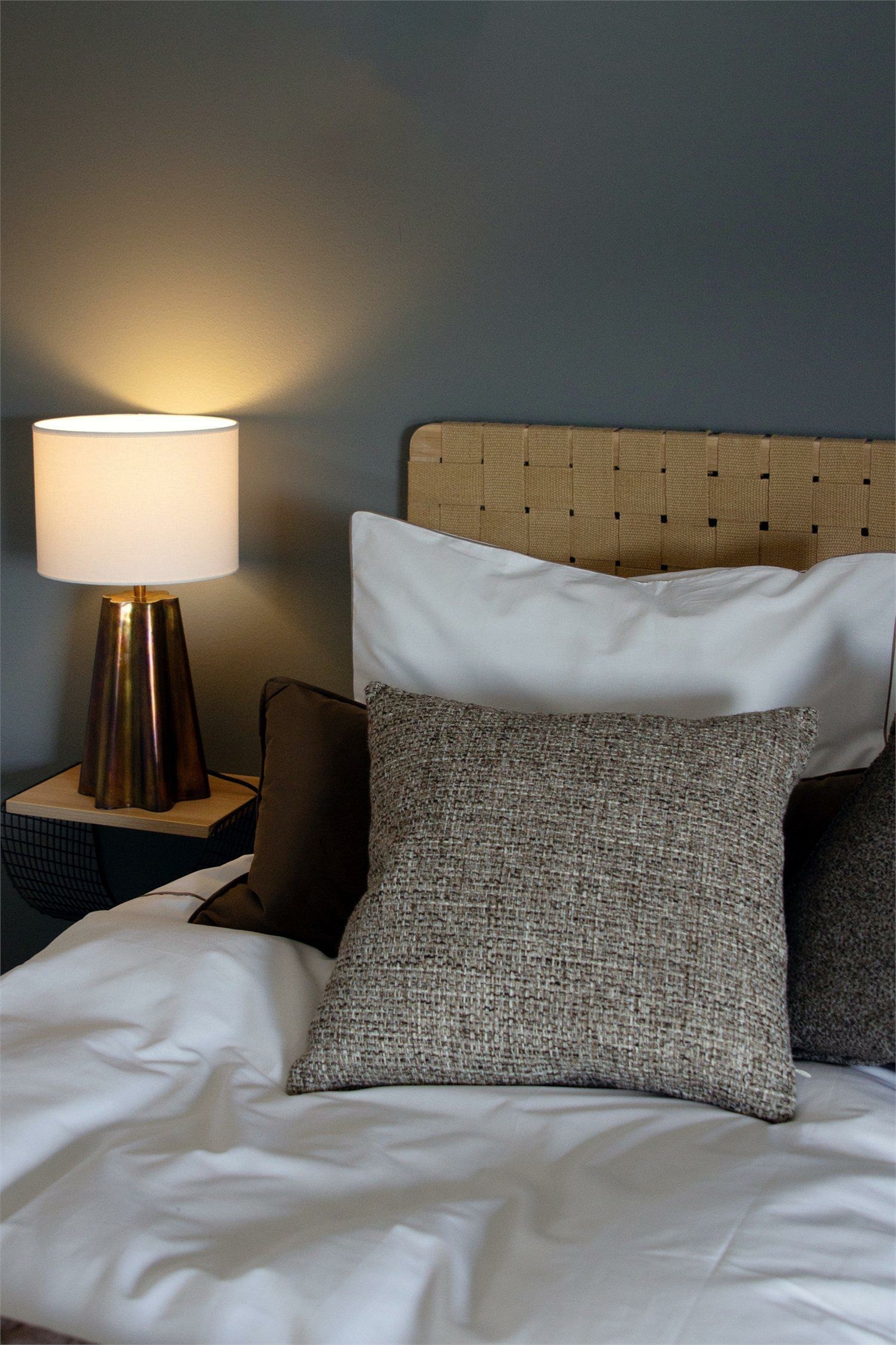 Основание лампы Aira с поверхностью из промасленной латуни и белым цилиндрическим абажуром. Aira - это основание для лампы с органичной формой из гофрированного металла, сочетающее деревенский стиль с современным дизайном. Отделка выполнена вручную и уникальна для каждого изделия. Промасленная латунная поверхность дает теплый свет. Высота основания лампы - 34 см, общая высота с учетом абажура - 50 см, диаметр абажура - 25 см. Черный текстильный кабель длиной 1,5 м. Регулируемый цоколь E27. Максимальная мощность 25 Вт. IP20. Лампочка в комплект не входит.