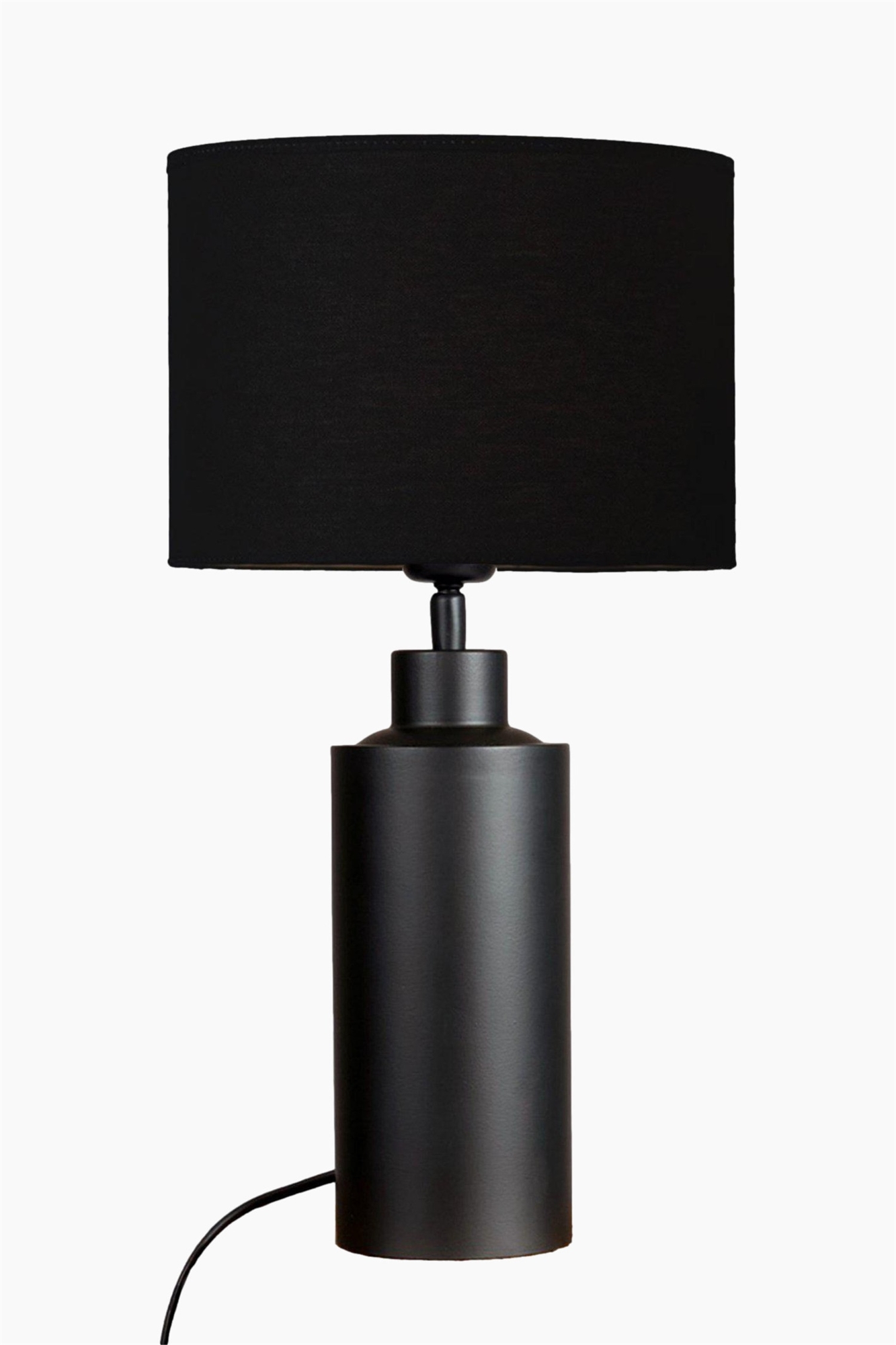 Настольная лампа на матовом черном основании с цилиндрическим белым абажуром. Абажур шириной 25 см и высотой 25 см оснащен фиксированным цоколем E27. Высота основания лампы составляет 32 см, общая высота - 55 см. Черный кабель длиной 1,7 м с выключателем и плоской вилкой ЕС. Цоколь E27. Макс. мощность 40 Вт. IP20. Лампочка в комплект не входит.